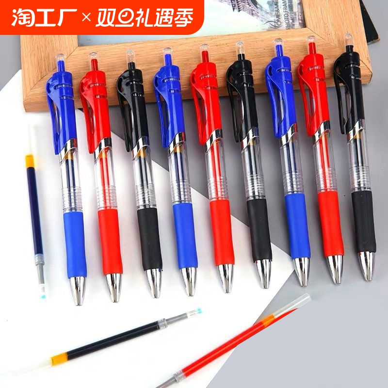 k-35按动中性笔0.5mm笔芯圆珠笔签字笔会议笔黑红蓝学生学习办公按压式水笔考试签字笔芯子弹头