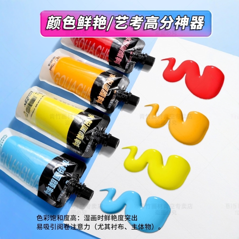 青竹画材水粉颜料美术生专用补充包100ml500ml艺考补充装画画袋装流光白65色果冻装水彩大袋练习钛白色彩42色