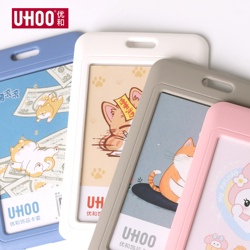 UHOO优和文创小中大学生卡套带挂绳校园员工胸牌工牌校牌饭卡证件卡透明卡通可伸缩耐用吊牌门禁公交卡套电话
