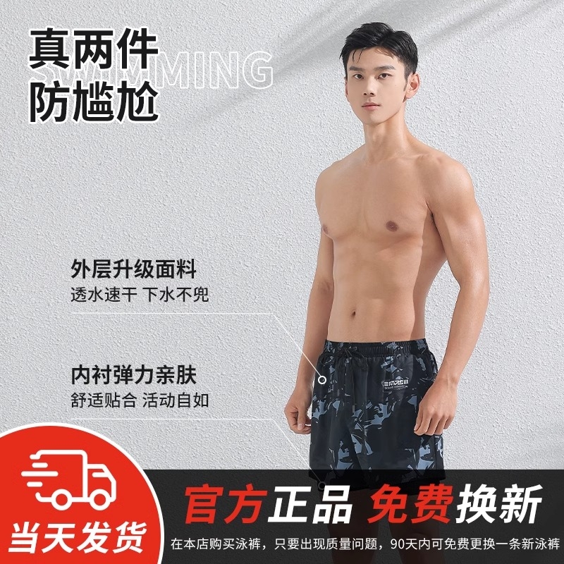 男士泳裤防尴尬2025新款平角大码游泳裤专业温泉泳衣游泳全套装备