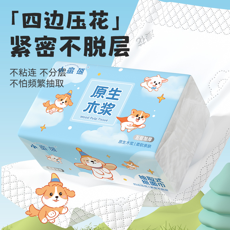 小蛮熊抽纸家用实惠装卫生纸巾擦手加厚面巾纸抽餐巾纸厕纸巾柴犬