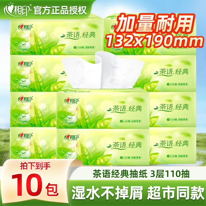 心相印抽纸家用3层120抽纸抽茶语面巾纸餐巾纸卫生纸实惠无香香味