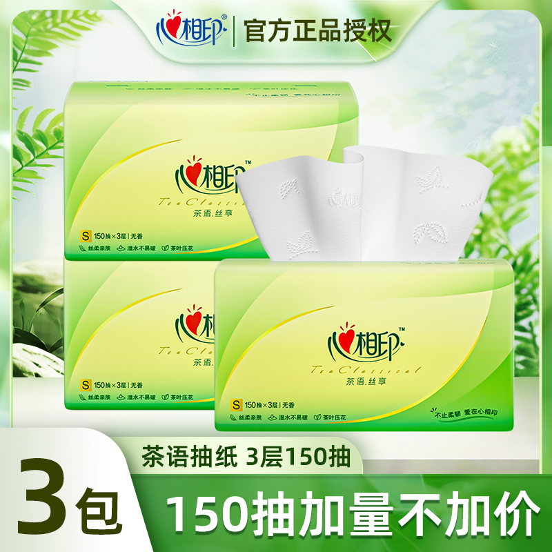 心相印抽纸3层加厚150抽优惠批发家用卫生纸餐巾纸面巾纸大包压花