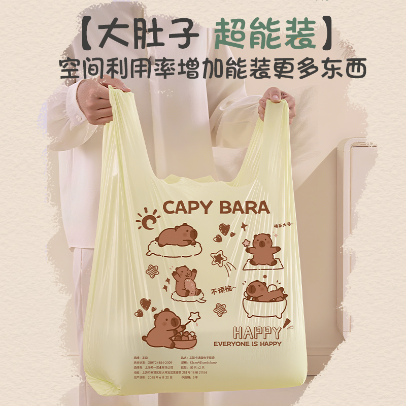 卡皮巴拉垃圾袋家用手提式加厚免撕背心大号宿舍用学生厨余清洁袋