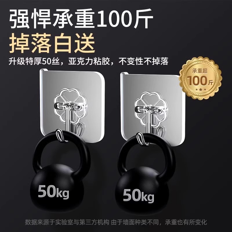 粘钩挂钩强力粘胶墙壁贴承重透明无痕挂勾贴钩免打孔免钉钩子墙上