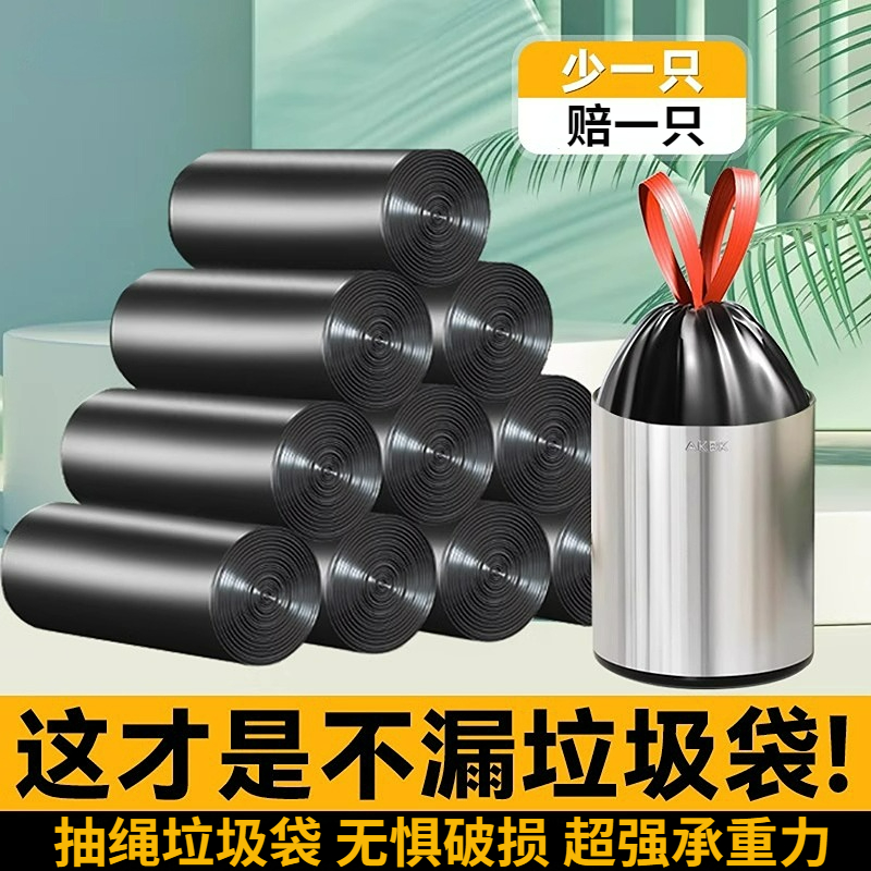 垃圾袋家用手提式加厚抽绳式厨房办公室黑色大号学生塑料袋特厚