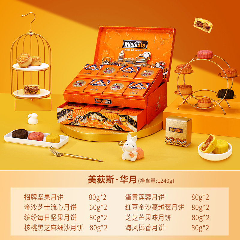 美荻斯华月中秋月饼礼盒金沙蔓越莓核桃黑芝麻多口味月饼中秋送礼