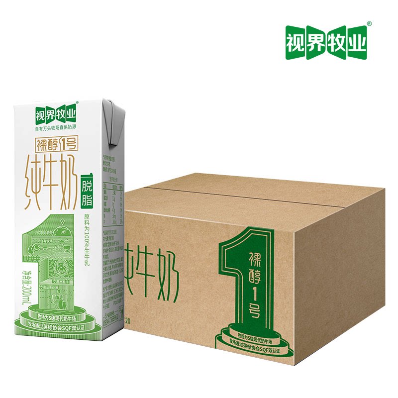 视界牧业脱脂纯牛奶200ml*20盒3.2蛋白学生儿童营养早餐