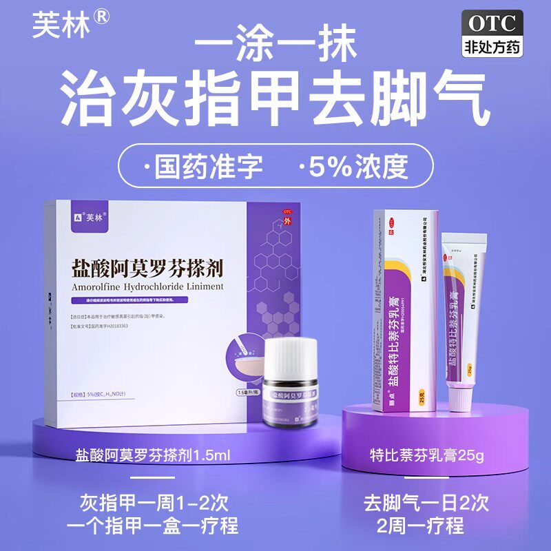 芙林盐酸阿莫罗芬搽剂灰指甲正品旗舰店阿罗莫芬擦剂啊莫罗芬甲癣