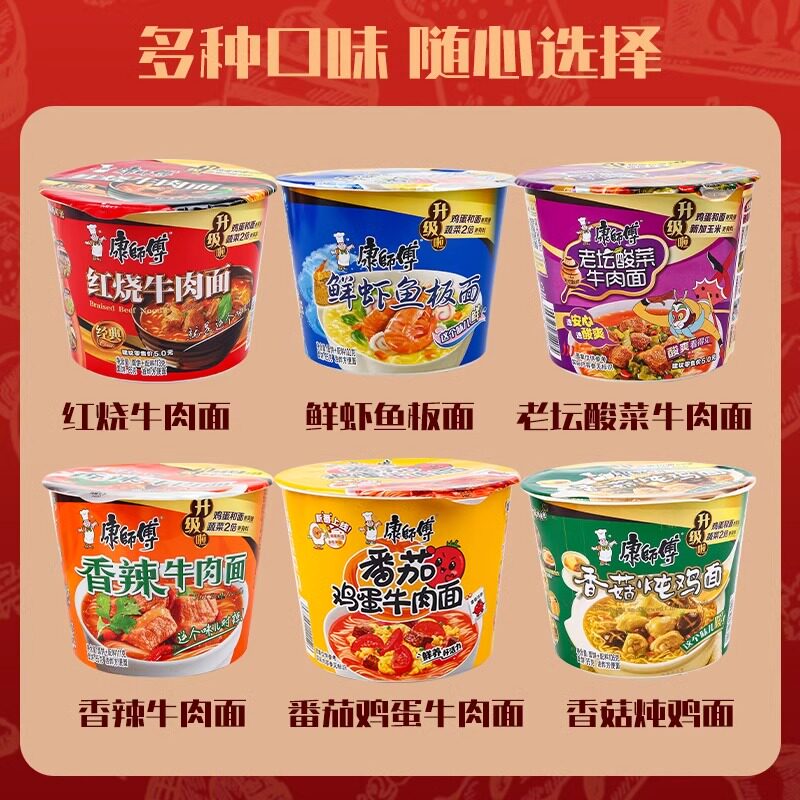 康师傅经典方便面整箱桶装红烧牛肉老坛酸菜面泡面免煮速食