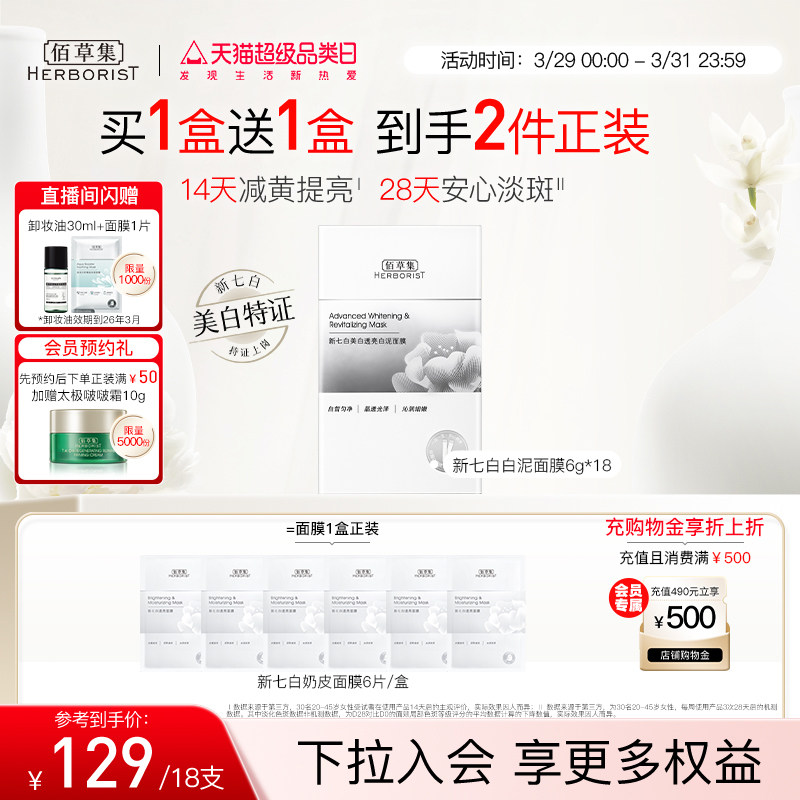 【3.0版】佰草集新七白大白泥美白透亮祛斑补水涂抹面膜清洁泥膜