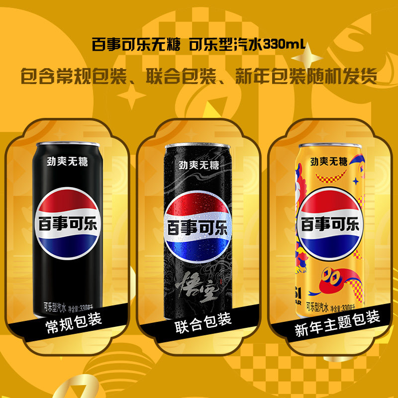 百事可乐无糖多口味碳酸饮料细长罐0糖0卡包装随机