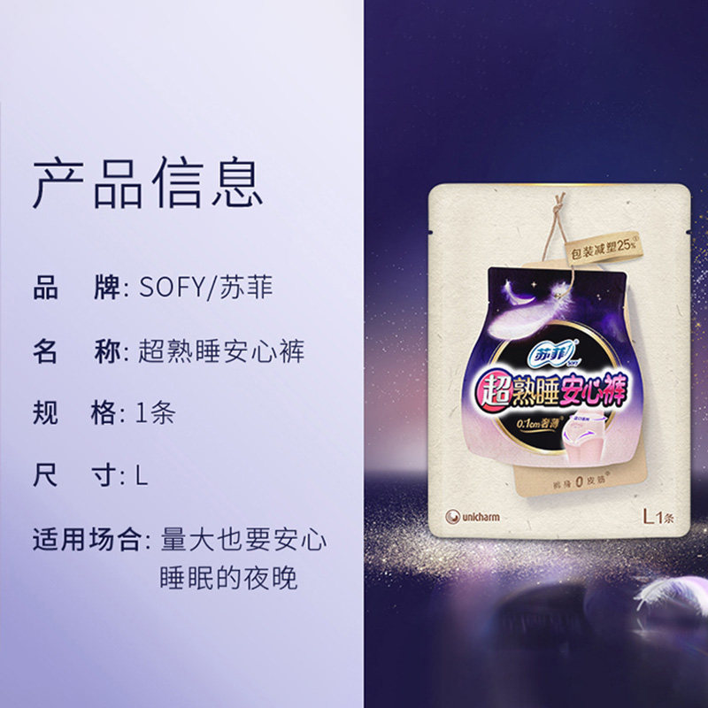 苏菲卫生巾超熟睡安睡裤夜用裤型姨妈巾尝新装L码