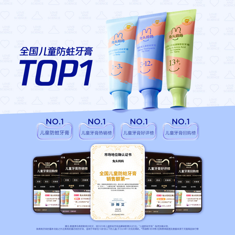 兔头妈妈儿童牙膏奥拉氟儿童防蛀牙膏50g1-3-12岁香甜果味 无香精