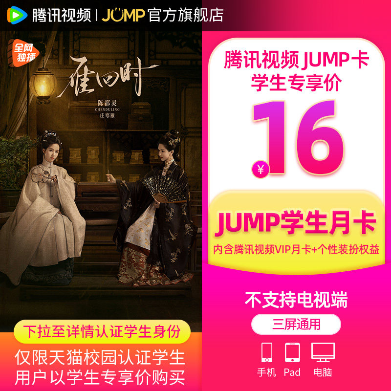 【JUMP学生月卡】腾讯视频JUMP学生月卡腾讯vip会员一个月雁回时