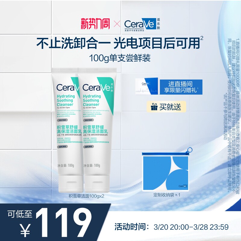CeraVe适乐肤积雪草保湿洁面乳敏感氨基酸洗面奶官方正品