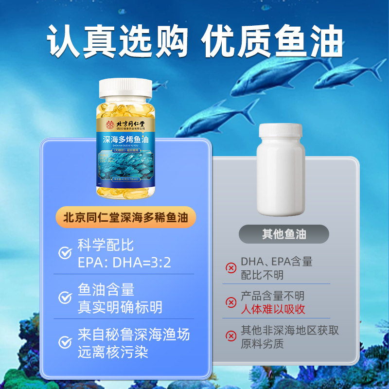 北京同仁堂深海鱼油磷虾油胶囊中老年鱼肝油omega3官方旗舰店正品