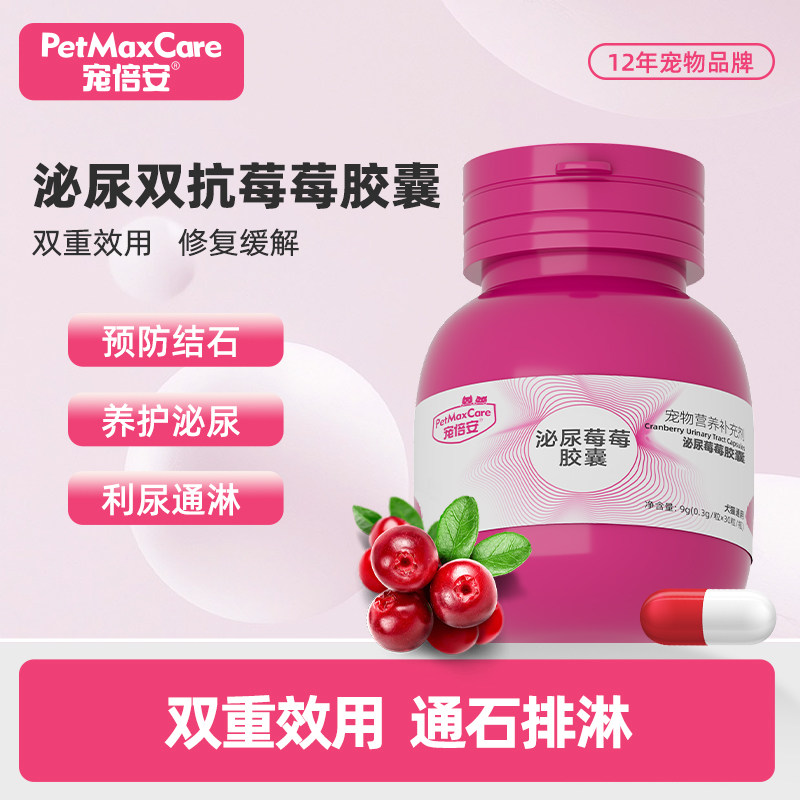 宠倍安猫咪蔓越莓果泌尿胶囊猫尿闭狗用尿路感染尿结石宠物药搭挡