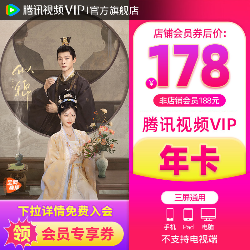 【会员价178元】腾讯视频VIP会员12个月1年卡腾讯会员滤镜