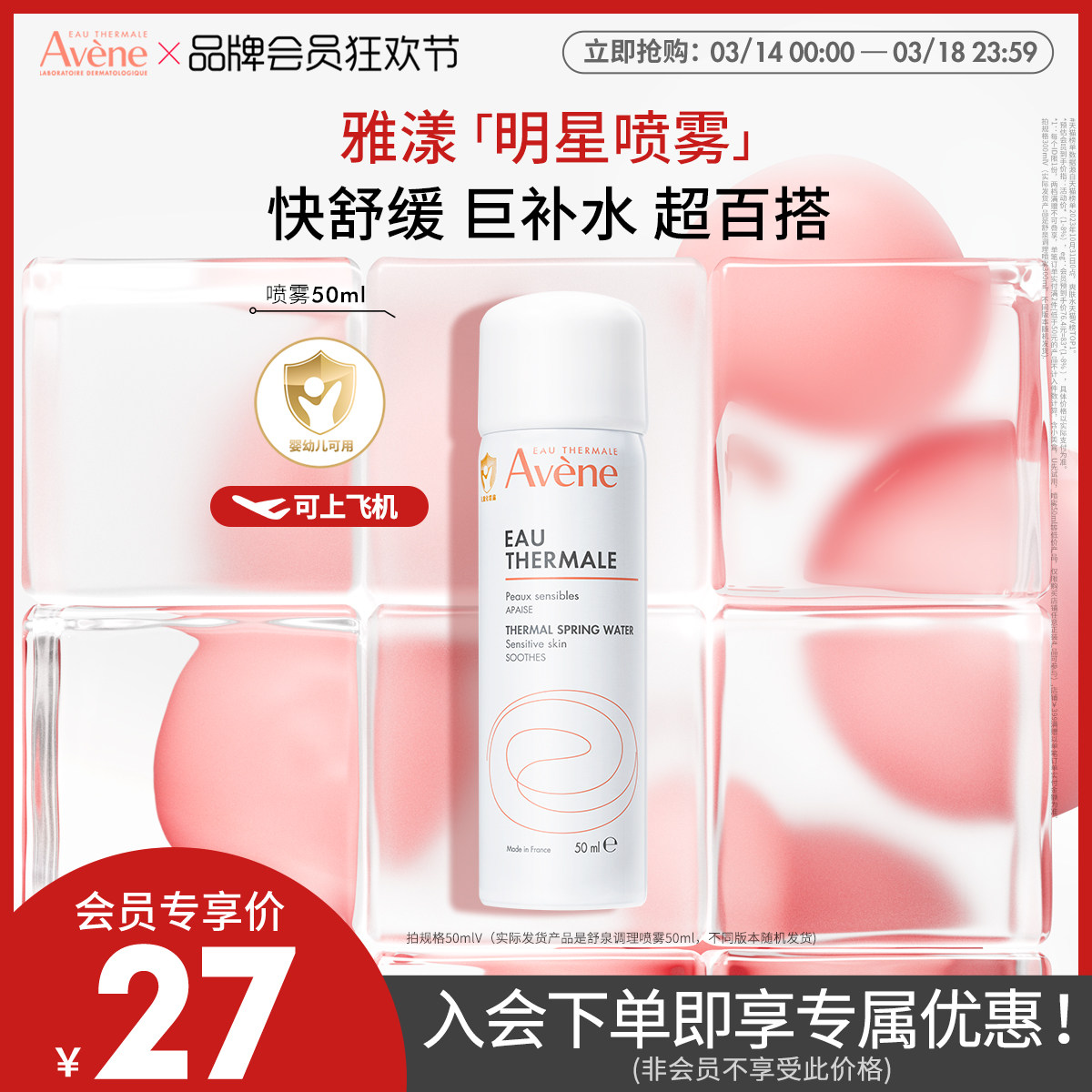 【会员狂欢节】雅漾舒泉调理喷雾爽肤水舒缓活泉水旅行装补水官网