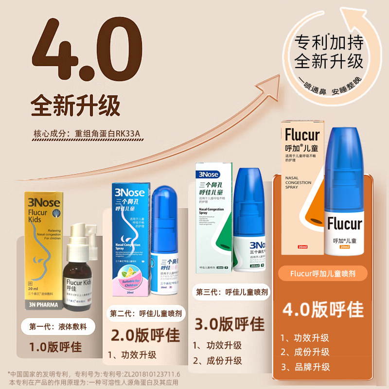 三个鼻孔呼佳儿童通鼻神器鼻堵塞鼻子不通气宝宝专用鼻喷剂甜橙味