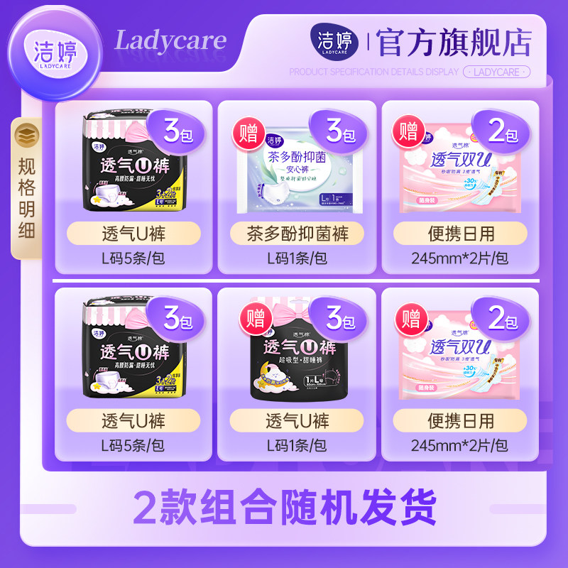 【百补】洁婷安心裤透气U裤高腰安睡裤女经期夜用姨妈卫生巾官方