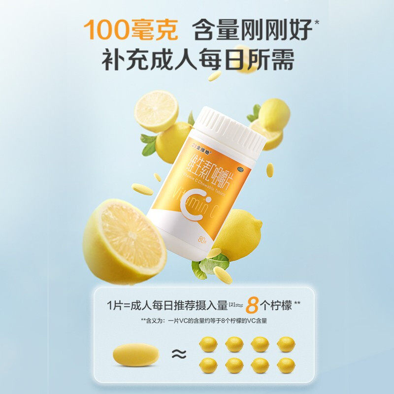 21金维他 维生素C咀嚼片成人vc补充维c非泡腾片官方旗舰店正品