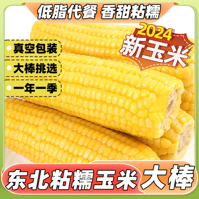 新鲜正宗东北黄糯玉米棒2024苞米真空包装黄粘玉米加热即食代早餐