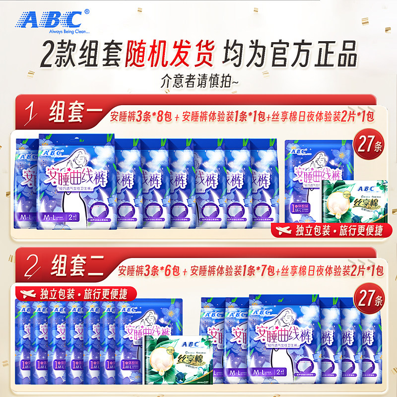 【包邮】ABC安睡心裤夜用超长防漏25条M-L码裤型卫生巾姨妈巾