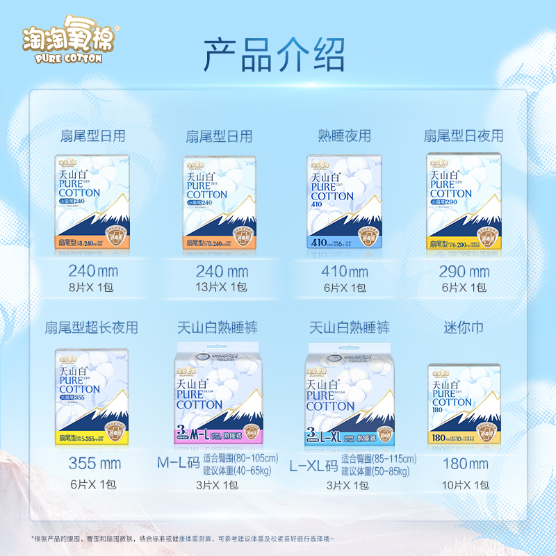 淘淘氧棉消毒级纯棉卫生巾天山白全周期日夜用组合姨妈巾官方正品