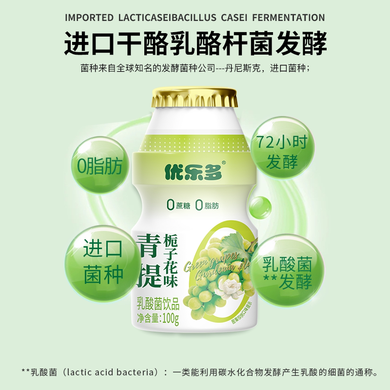 优乐多乳酸菌饮品青提栀子花味100g*4瓶早餐益生菌酸奶发酵