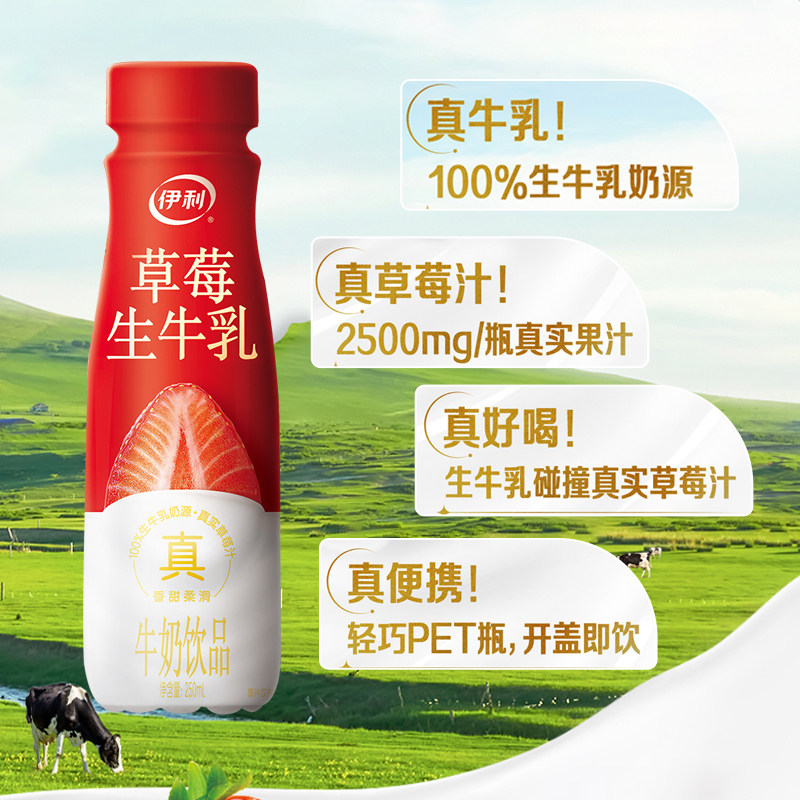 伊利草莓牛奶饮品250ml*10瓶整箱学生营养早餐奶浓醇美味