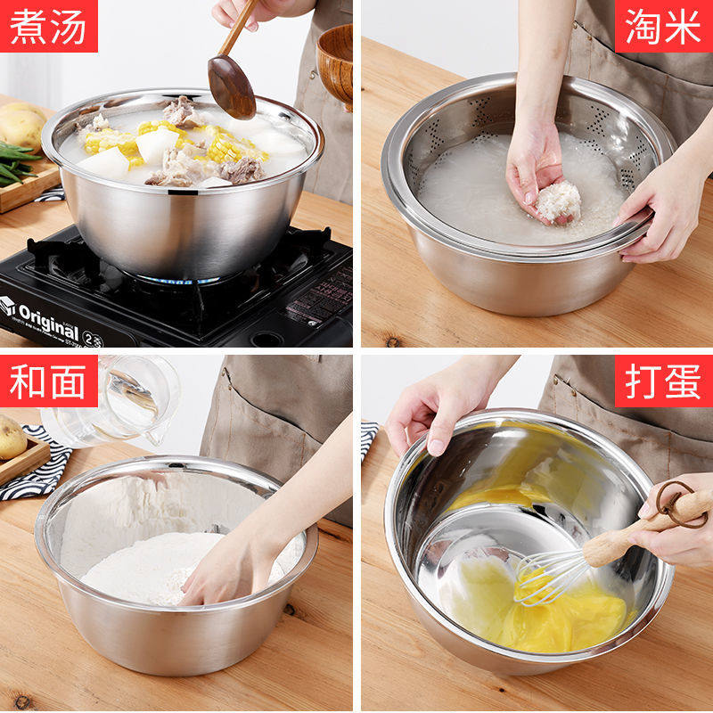 【五件套】不锈钢盆圆形加厚加深盆子家用厨房装汤和面洗菜沥水盆