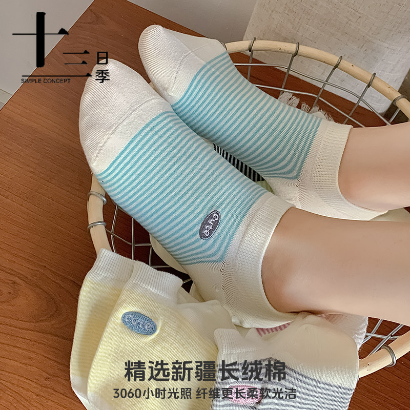 十三日季女士条纹船袜春季吸汗透气防臭甜美时尚百搭低帮浅口短袜