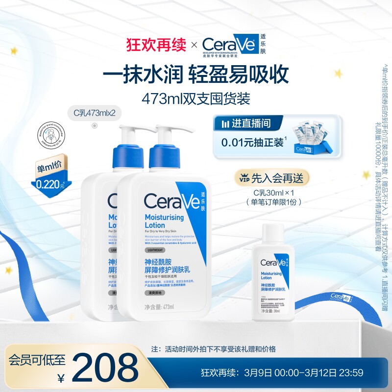 【张凌赫同款】CeraVe适乐肤C乳长效保湿补水修护乳液神经酰胺