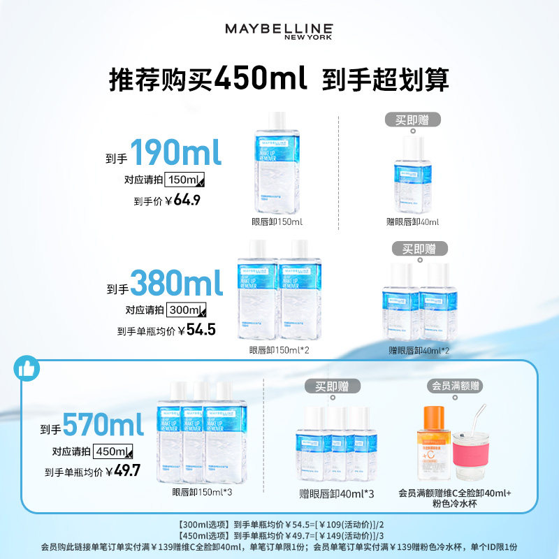 【狂欢再续】美宝莲眼唇卸妆液眼部卸妆水卸妆油全脸可卸温和敏感