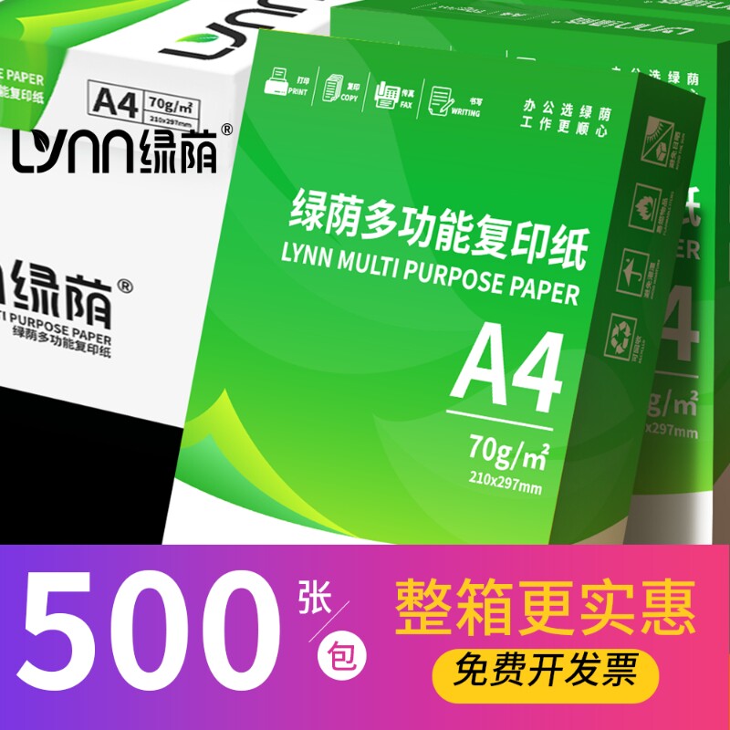 绿荫a4打印纸500张70g加厚80克A4纸打印复印资料办公用纸白纸草稿纸绘画纸打印机纸包邮批发办公用品整箱