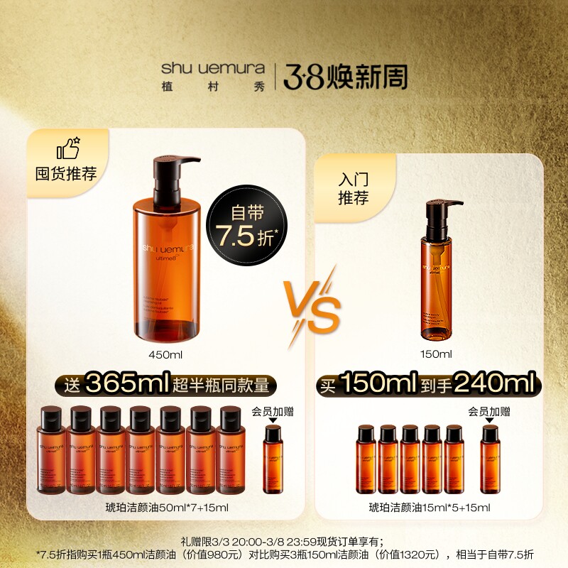 【38立即抢购】植村秀琥珀卸妆油养肤深层清洁毛孔洁面温和官方