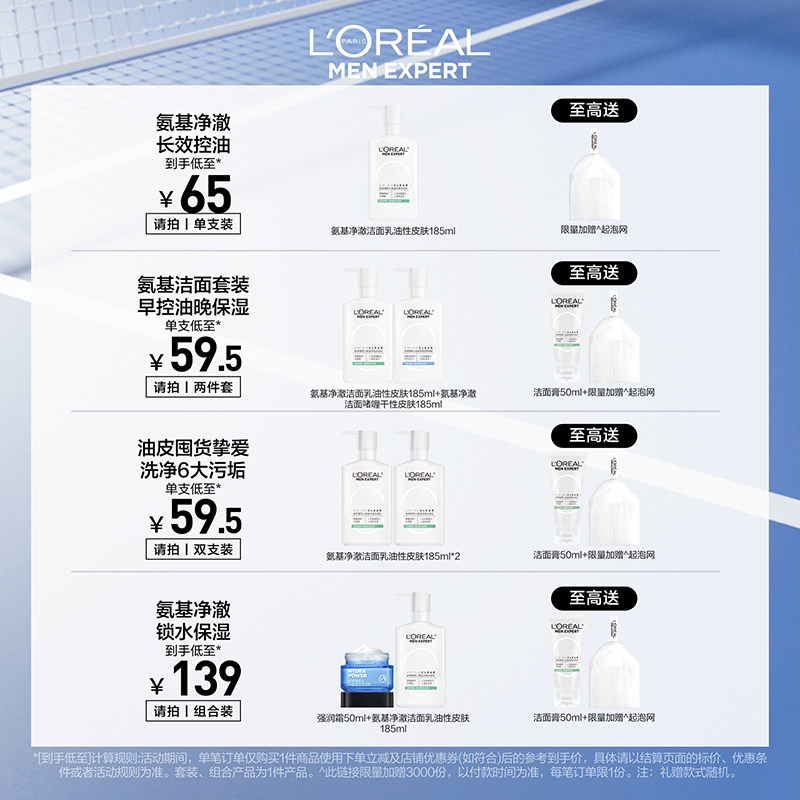 【38立即抢购】欧莱雅男士专用氨基酸洗面奶清爽控油男生洁面套装