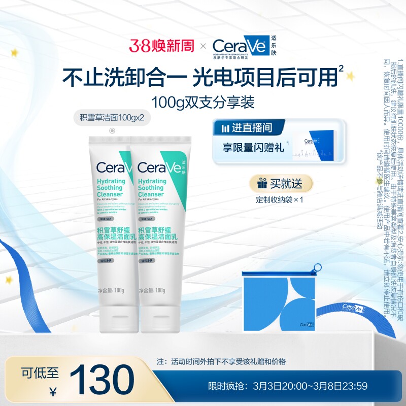 【38限时疯抢】CeraVe适乐肤积雪草保湿洁面乳敏感氨基酸洗面奶