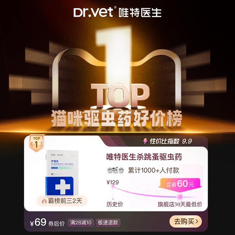 唯特医生猫咪驱虫药宠物体内外一体打虫药杀跳蚤耳螨狗狗驱虫滴剂