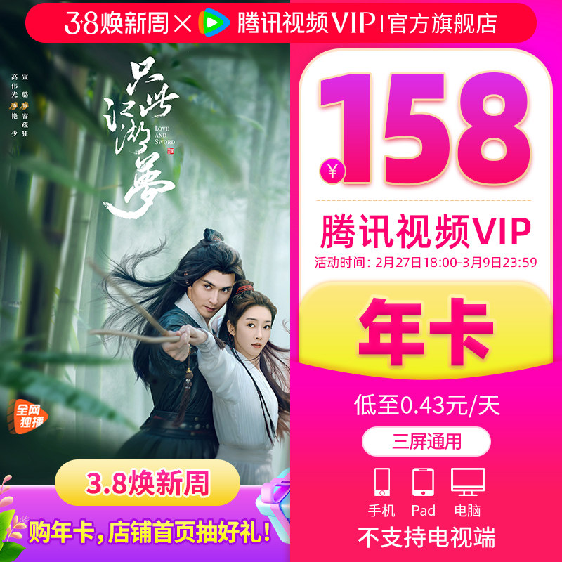【限时158元】腾讯视频VIP会员12个月1年卡腾讯会员滤镜