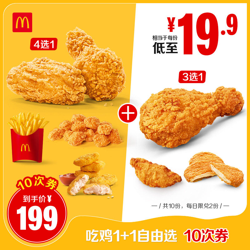 麦当劳 吃鸡1+1自由选 10次券 电子优惠券【下拉详情有惊喜】