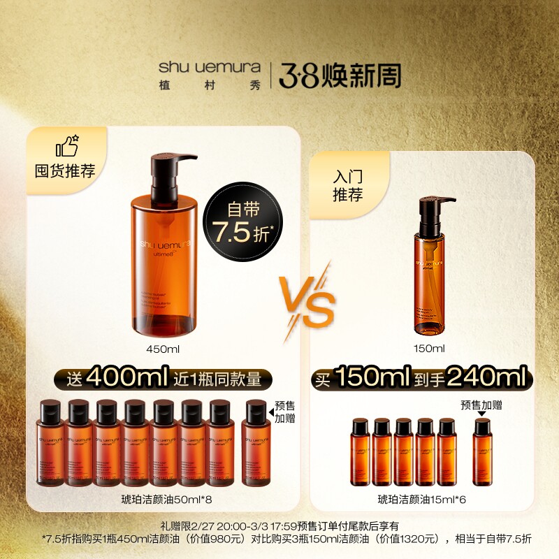 【38预售】植村秀琥珀卸妆油养肤深层清洁毛孔洁面温和官方正品