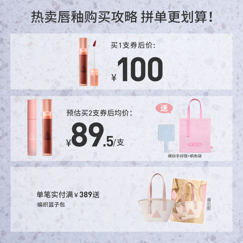 【38大促】3CE水雾唇露唇釉口红持久不易沾杯laydown乌龙奶茶