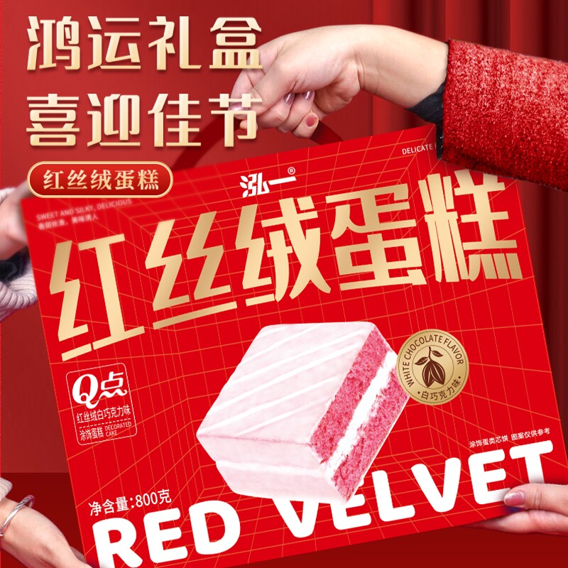泓一红丝绒礼盒800g春节年货送礼手提儿童夹心蛋糕休闲零食品点心