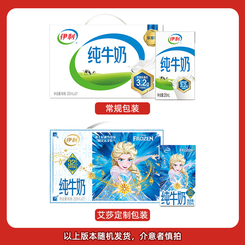 伊利纯牛奶250ml*21盒*2箱优质乳蛋白学生营养早餐【包装随机】