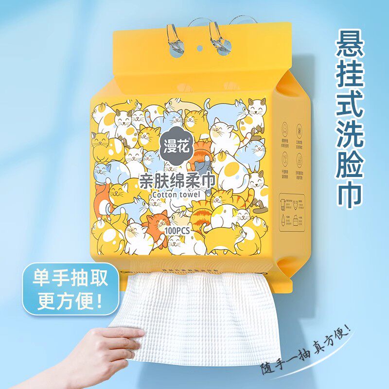 漫花悬挂式100抽洗脸巾一次性加厚加大干湿两用洁面巾毛巾