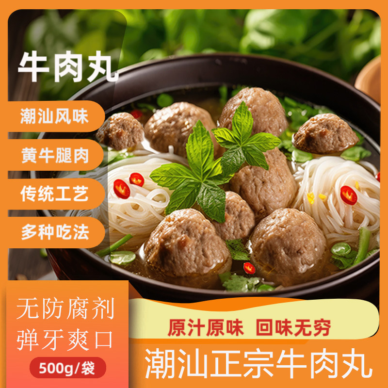 潮汕牛肉丸正宗牛肉丸汕头特产冷冻火锅烧烤丸子Q弹爆汁美味丸子