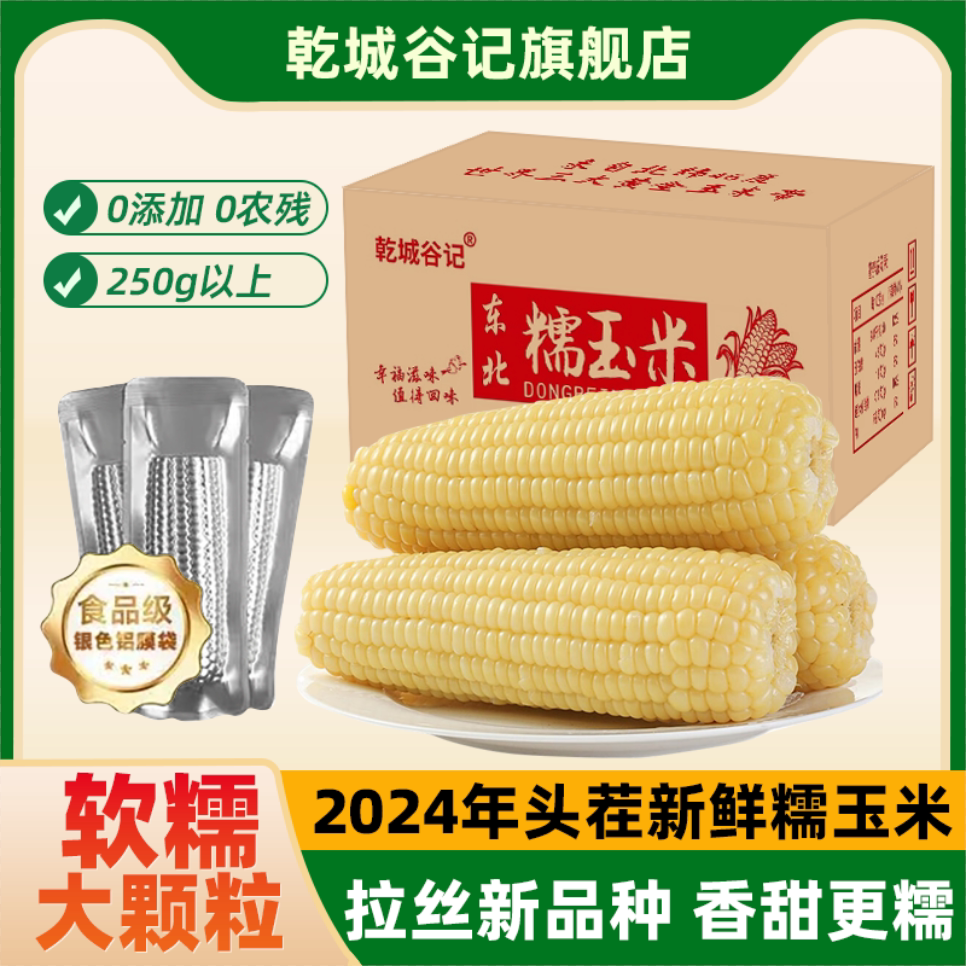 年货节东北2024新鲜白糯玉米真空铝箔包装250克8根大棒粗粮